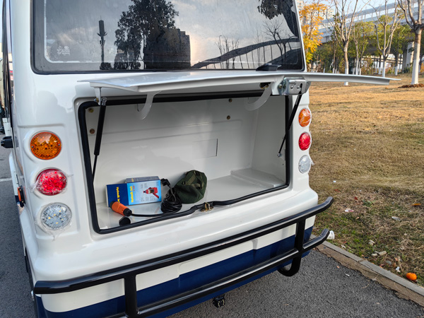 就在昨天武漢某街道辦再次在我司訂購(gòu)一批電動(dòng)巡邏車(chē)成功交車(chē)?yán)?,電?dòng)巡邏車(chē)未避免日常擦碰,特定制一套前后保險(xiǎn)護(hù)欄,這樣既保證整車(chē),同時(shí)又增添了整車(chē)巡邏車(chē)的威嚴(yán)感,讓整車(chē)外觀看上去更具威懾力,同時(shí)整車(chē)玻璃都貼有汽車(chē)專(zhuān)用膜,這樣讓整車(chē)的私密性及防紫外線更強(qiáng)更有效。同時(shí)為保證整車(chē)功能更豐富,此款車(chē)專(zhuān)配有了倒車(chē)影像,讓整車(chē)停車(chē)倒車(chē)更方便。整車(chē)的實(shí)用性增加更強(qiáng)。整車(chē)仍使用是熱銷(xiāo)的一款配置,保證整車(chē)在街道內(nèi)日常巡邏需求,下面我們一起來(lái)看看這款電動(dòng)巡邏車(chē)交車(chē)照片吧。